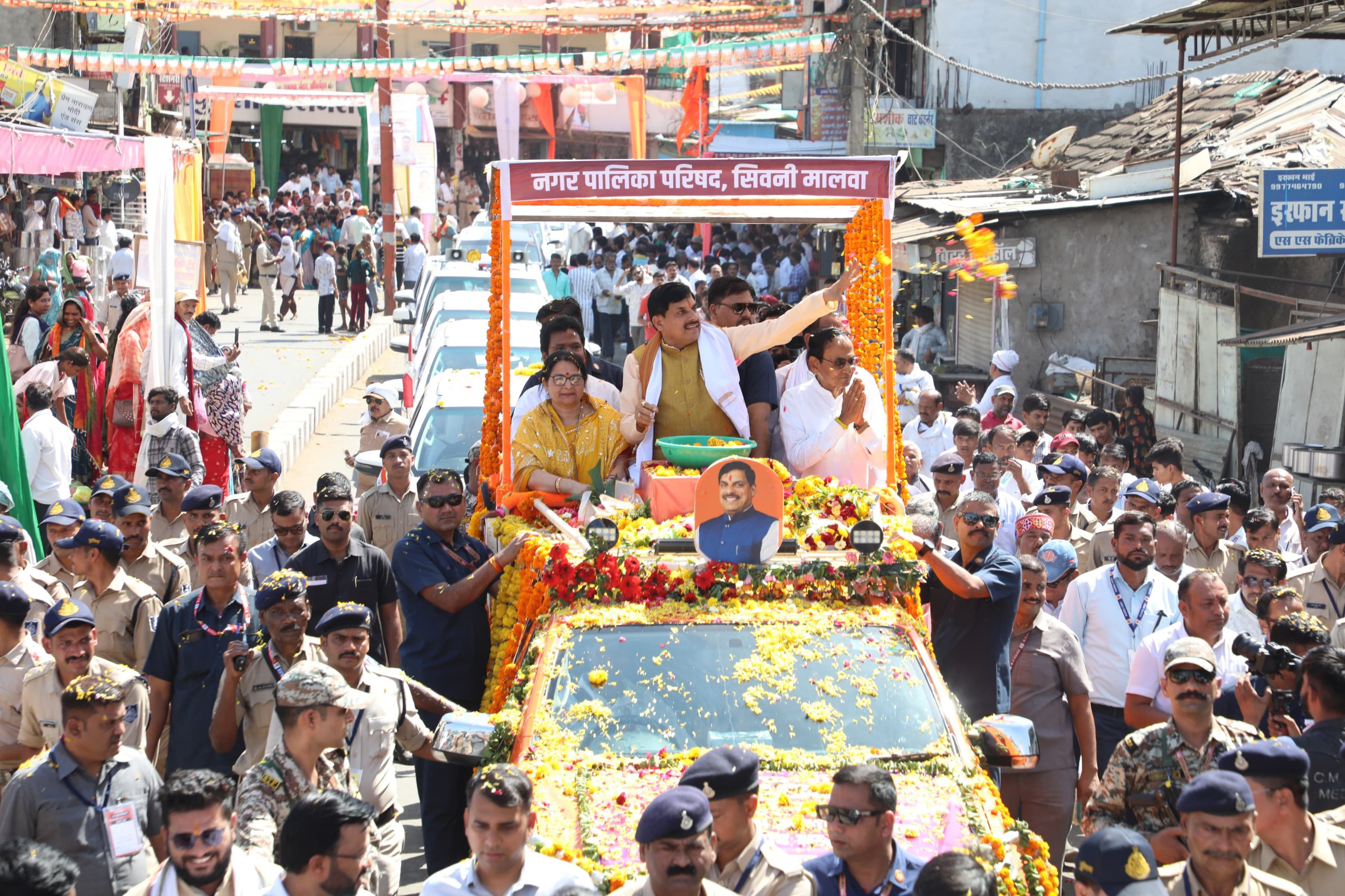 मुख्यमंत्री डॉ. मोहन यादव ने सिवनी मालवा में रोड शो में जनता का अभिवादन किया।