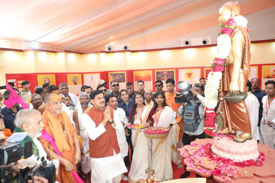 मुख्यमंत्री डॉ. मोहन यादव ने ओंकारेश्वर में 5 दिवसीय एकात्मक महोत्सव के शुभारंभ अवसर पर आदि गुरु शंकराचार्य की प्रतिमा पर पुष्प अर्पित कर नमन किया।