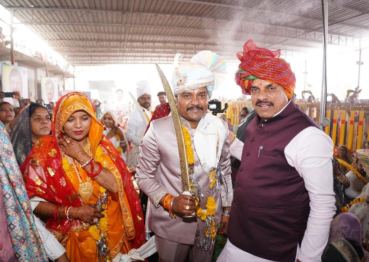 मुख्यमंत्री डॉ. मोहन यादव ने धार जिले के ग्राम सिरसोदिया में सर्वसमाज जिलास्तरीय मुख्यमंत्री कन्यादान विवाह समारोह में नव दंपतियों को आशीर्वाद दिया।