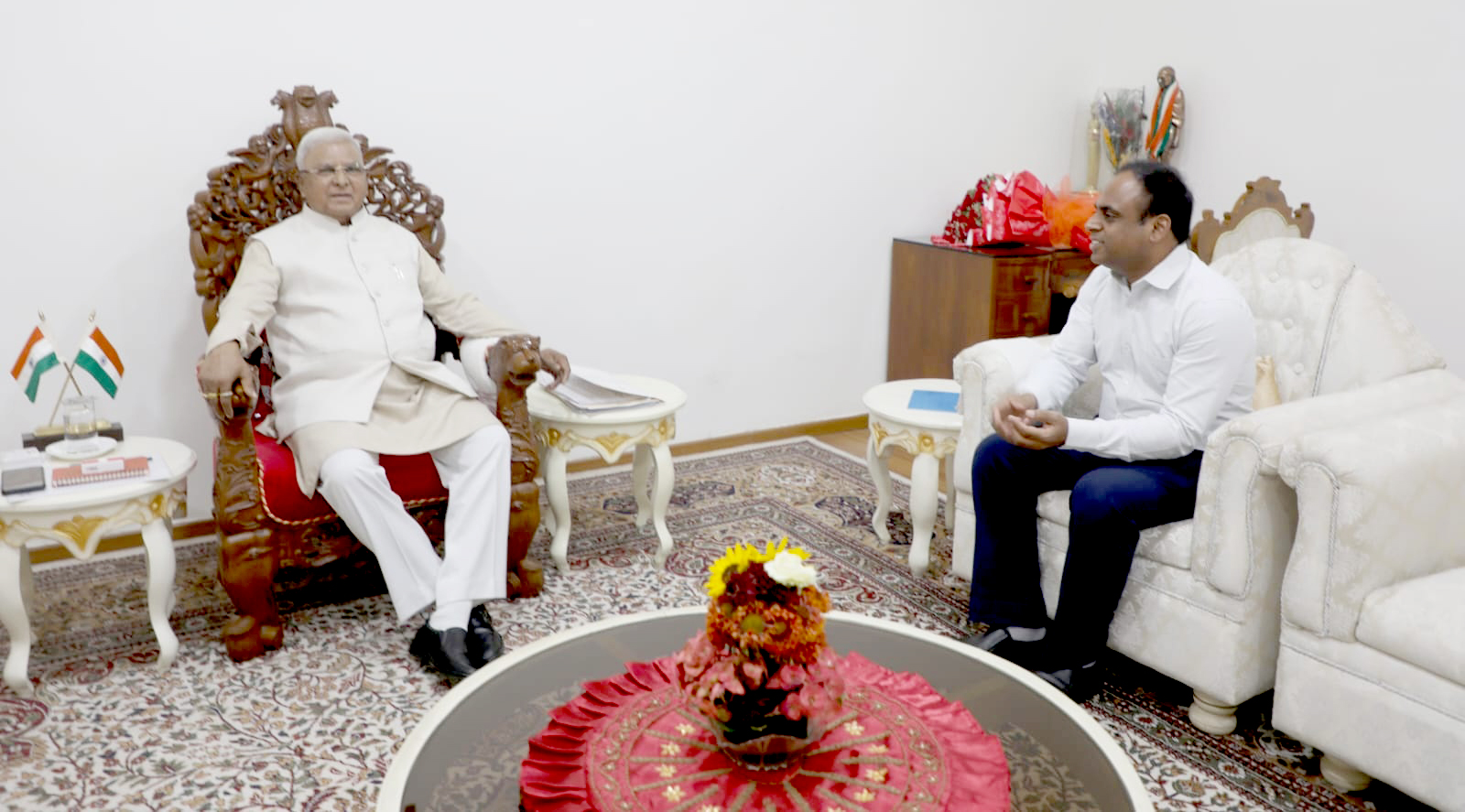 राज्यपाल श्री मंगुभाई पटेल से मुख्यमंत्री के सचिव श्री ईलैया राजा टी. ने लोकभन में सौजन्य भेंट की।