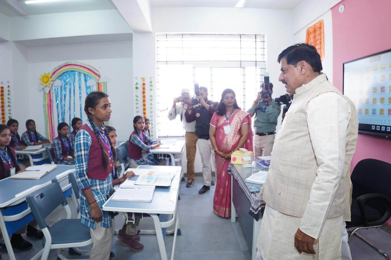 मुख्यमंत्री डॉ.मोहन यादव ने नरयावली के शासकीय सांदीपनि उच्चतर माध्यमिक विद्यालय के विद्यार्थियों से संवाद किया।