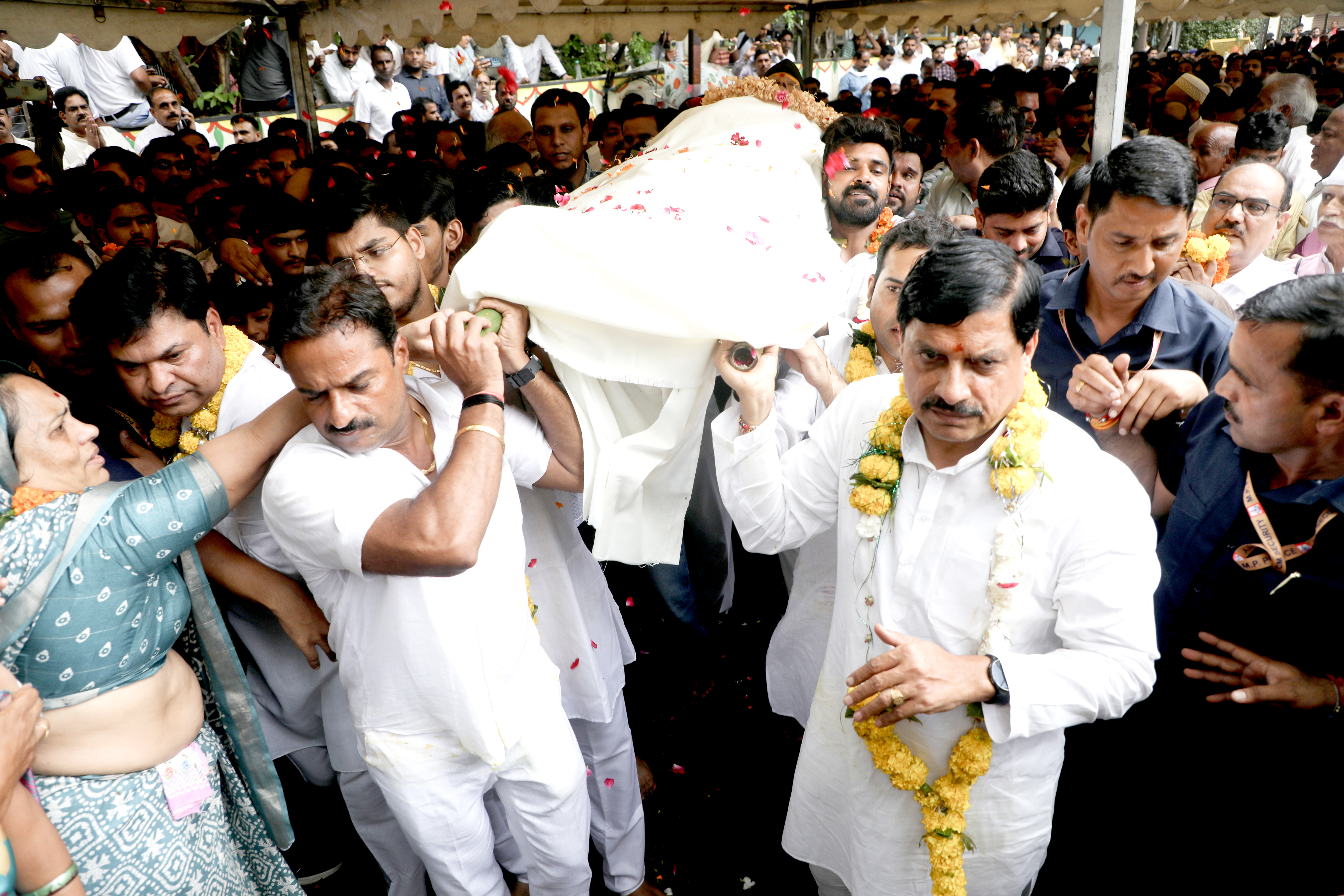 मुख्यमंत्री डॉ. मोहन यादव ने अपने पिताजी की अंतिम यात्रा में पार्थिव देह को कांधा दिया।