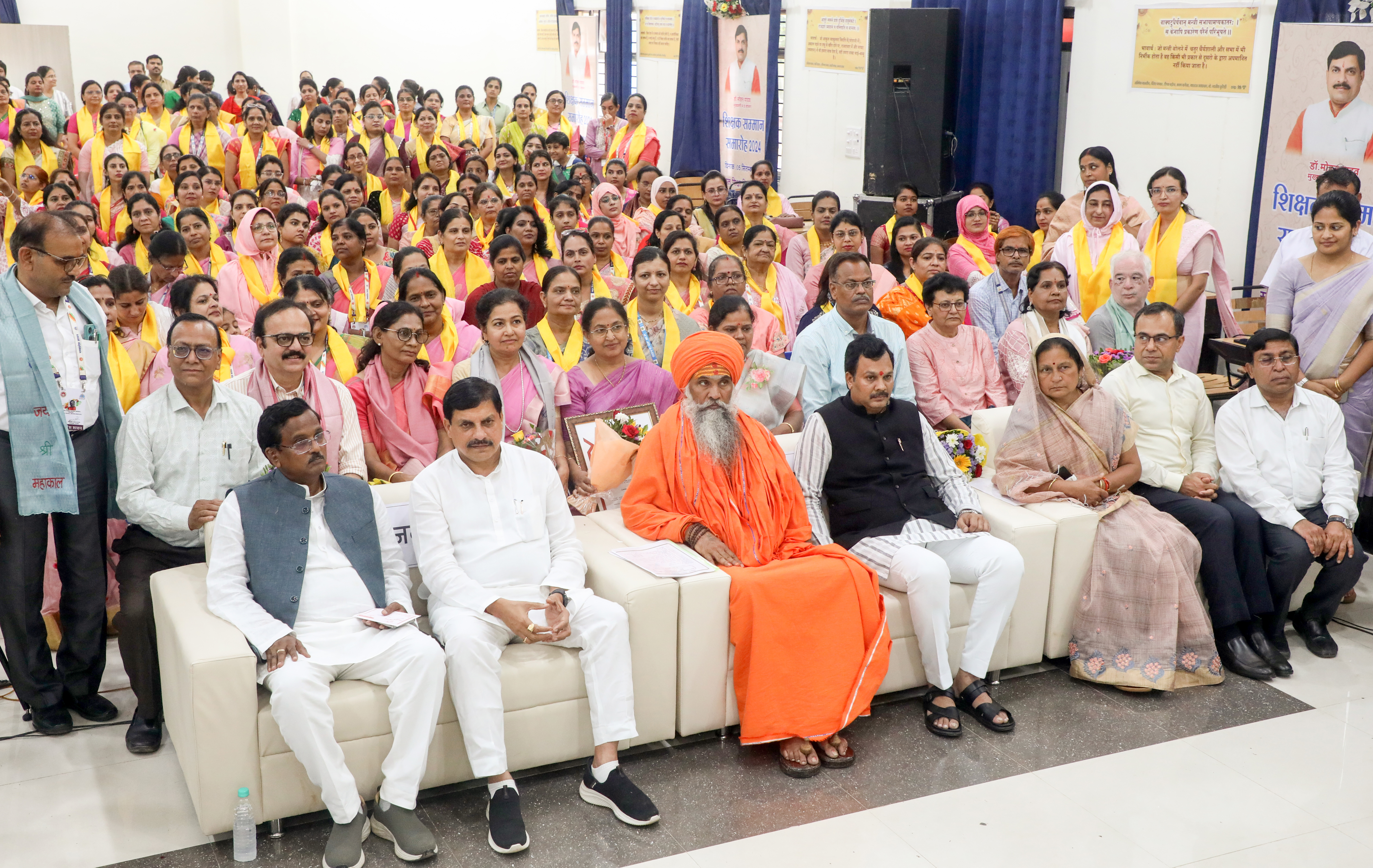 मुख्यमंत्री डॉ. मोहन यादव के साथ उज्जैन में शिक्षक दिवस पर आयोजित शिक्षक सम्मान समारोह का समूह छाया चित्र।