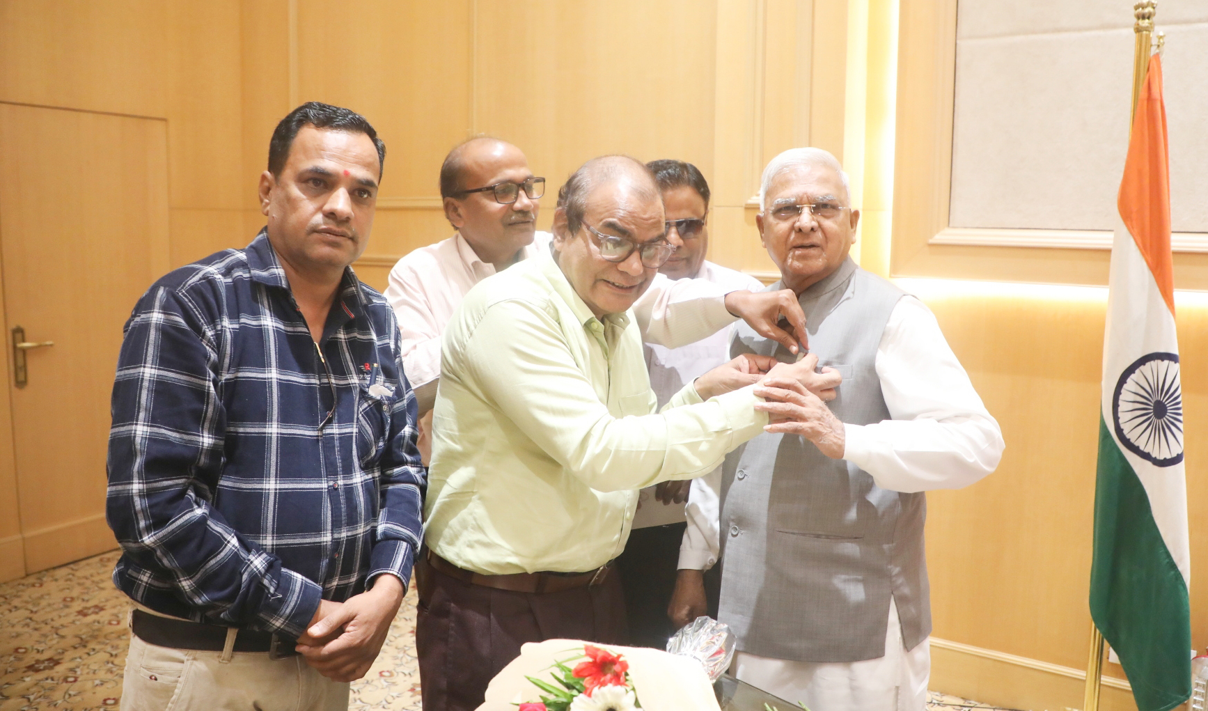 राज्यपाल श्री मंगुभाई पटेल को राजभवन मे "द ब्लाइंड रिलीफ एसोसिएशन" भोपाल के पदाधिकारियों व अध्यक्ष श्री नासिर हुसैन ने संस्था का फ्लैग लगाकर अभिन्दन किया।
