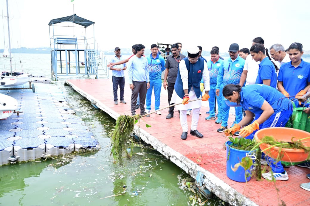 खेल एवं युवा कल्याण मंत्री श्री विश्वास कैलाश सारंग ने बड़े तालाब की सफाई कर की स्वच्छता अभियान की शुरूआत।
