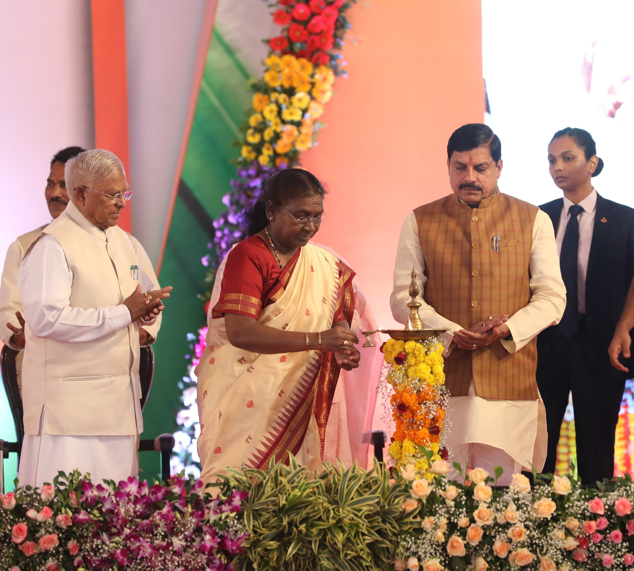 राष्ट्रपति श्रीमती द्रौपदी मुर्मु ने उज्जैन के ग्राम ढेंडिया में सफाई-मित्रों के सम्मान समारोह का दीप प्रज्ज्वलित कर शुभारंभ किया।