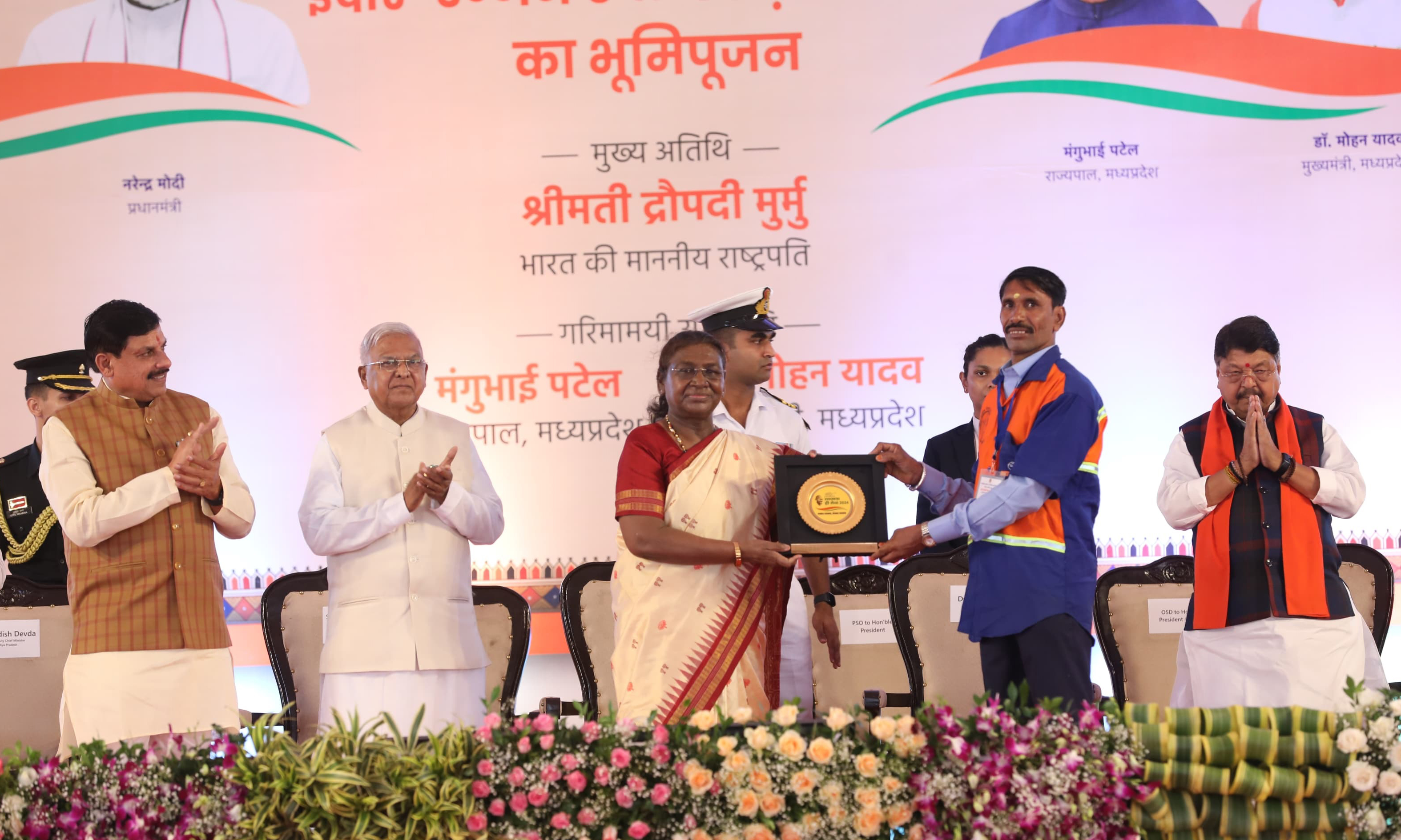 राष्ट्रपति श्रीमती द्रौपदी मुर्मु ने उज्जैन के ग्राम ढेंडिया में सफाई-मित्रों का सम्मान किया।