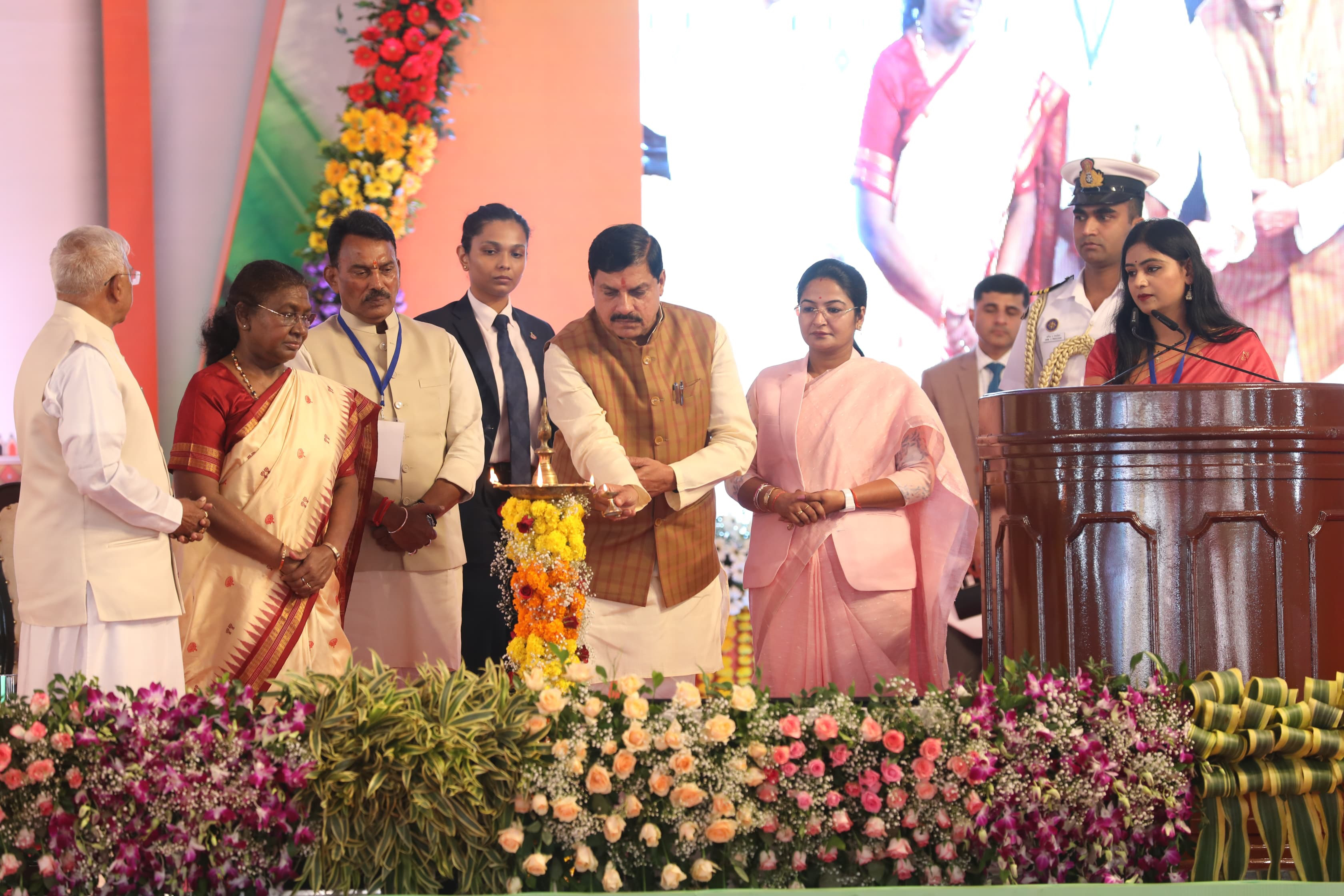 राष्ट्रपति श्रीमती द्रौपदी मुर्मु ने उज्जैन के ग्राम ढेंडिया में सफाई-मित्रों के सम्मान समारोह का दीप प्रज्ज्वलित कर शुभारंभ किया।