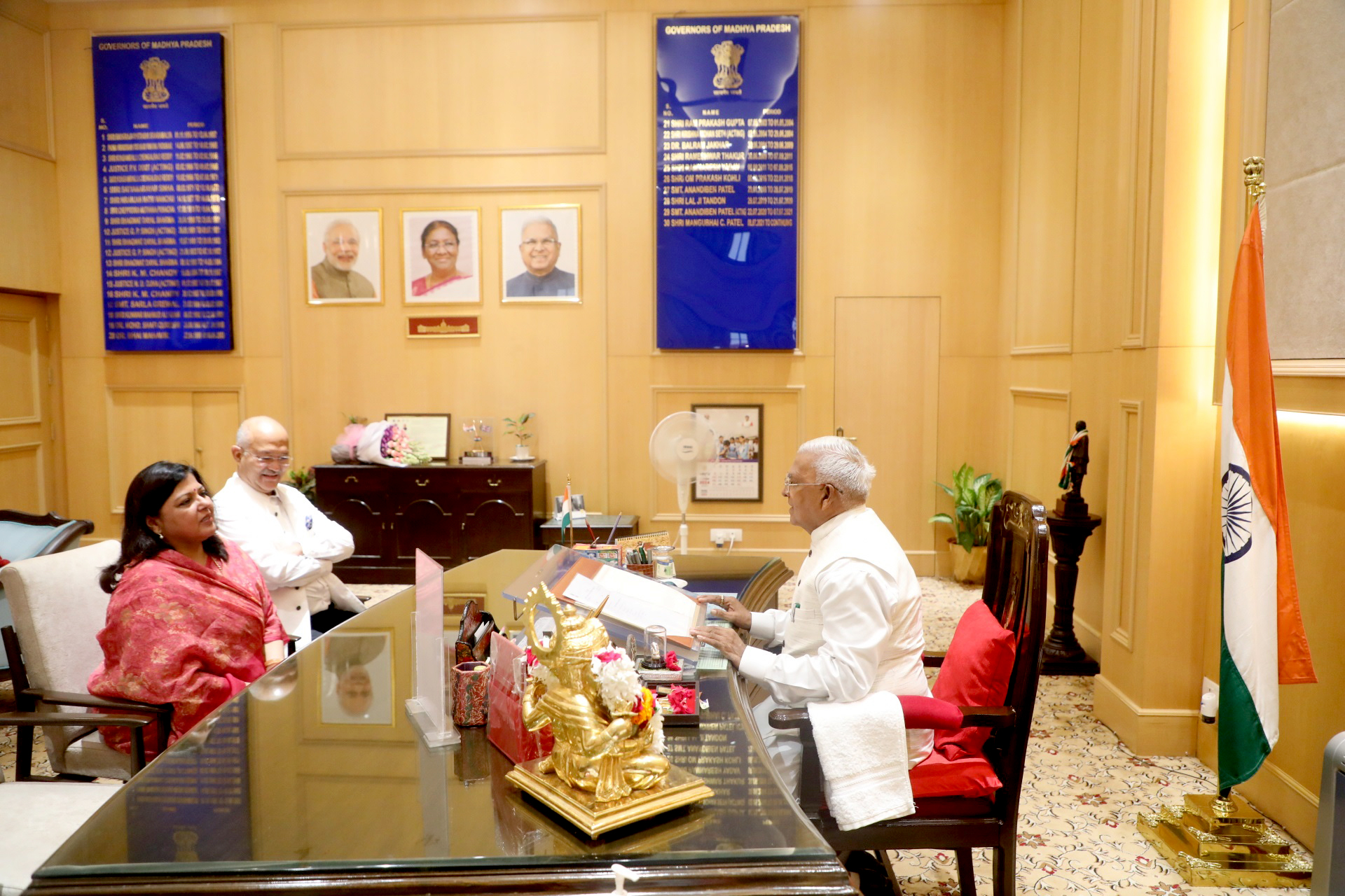 राज्यपाल श्री मंगुभाई पटेल से सेवानिवृत्त मुख्य सचिव श्रीमती वीरा राणा ने आज राजभवन में सौजन्य भेंट की।