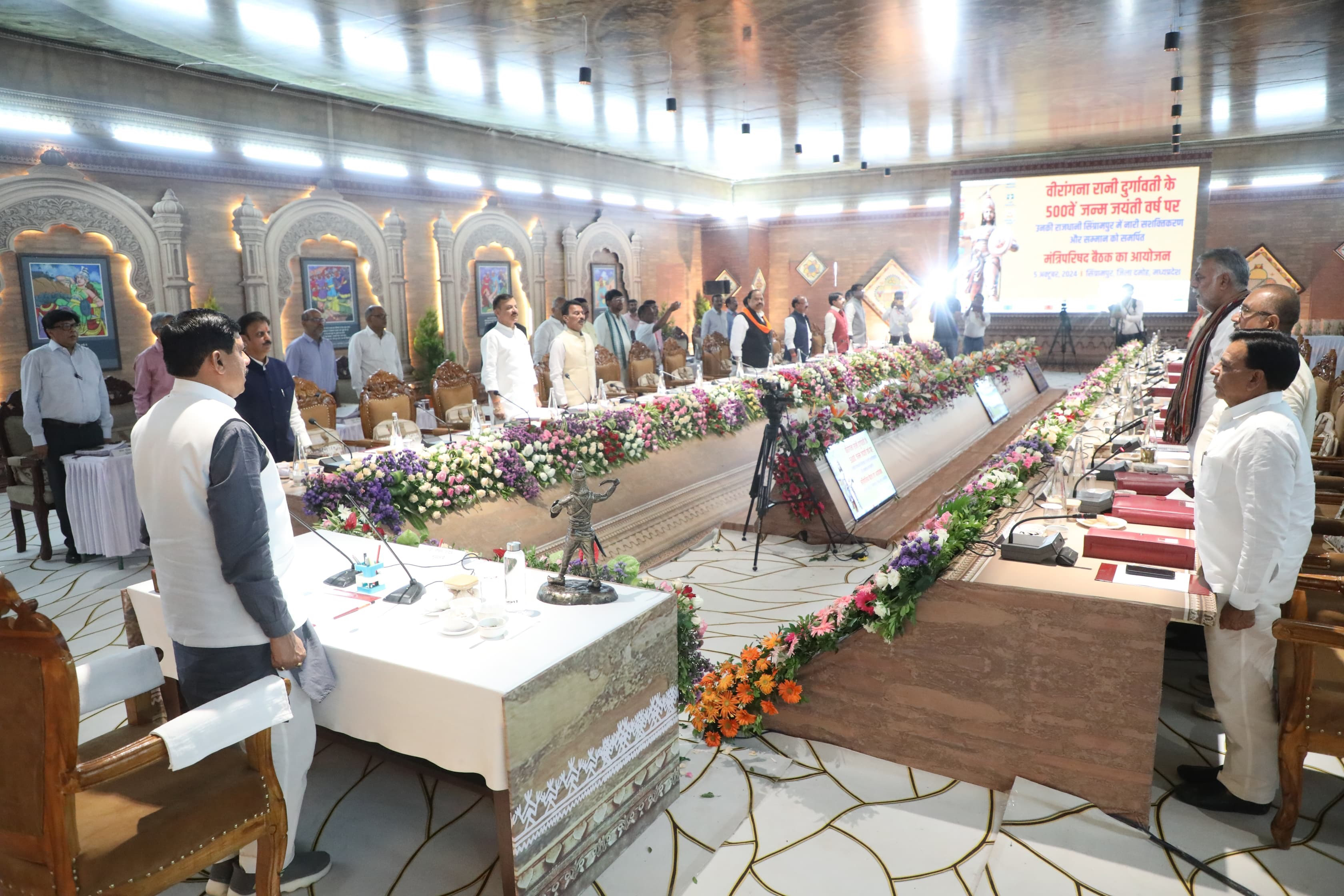 रानी दुर्गावती के अभूतपूर्व योगदान के सम्मान में दमोह के सिंग्रामपुर में आयोजित राज्य मंत्रि-परिषद की बैठक वन्दे-मातरम गान के साथ प्रारंभ हुई।