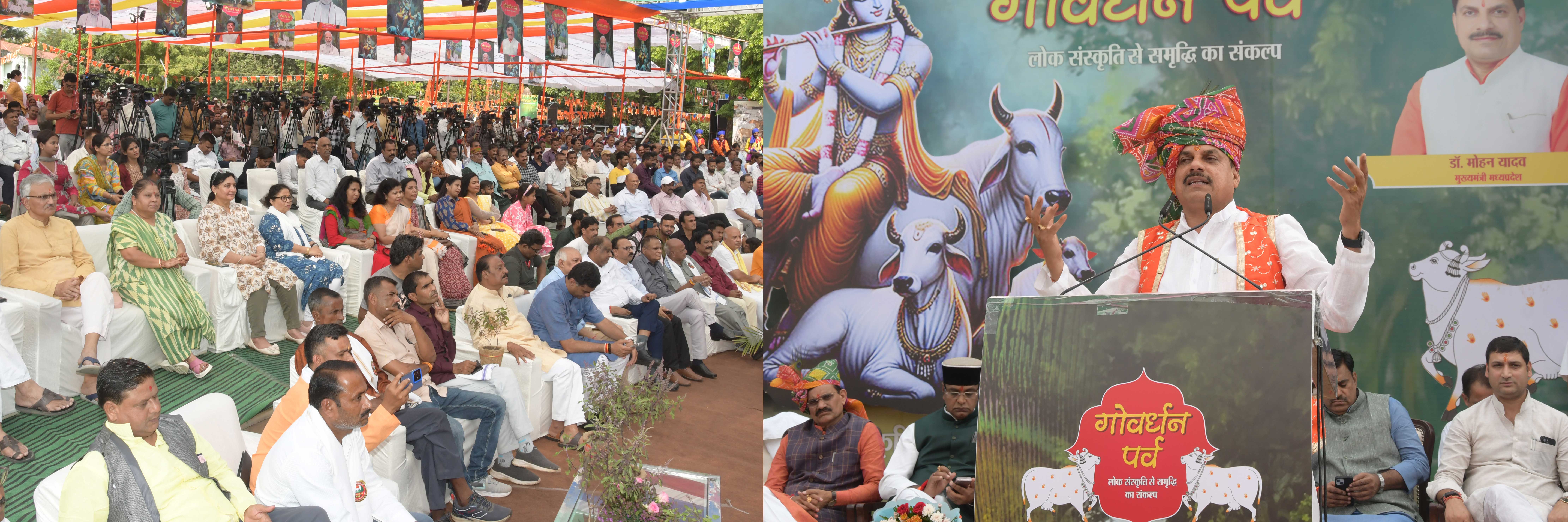 मुख्यमंत्री डॉ.मोहन यादव ने रवींद्र भवन में राज्य स्तरीय गोवर्धन पूजा समारोह को संबोधित किया।