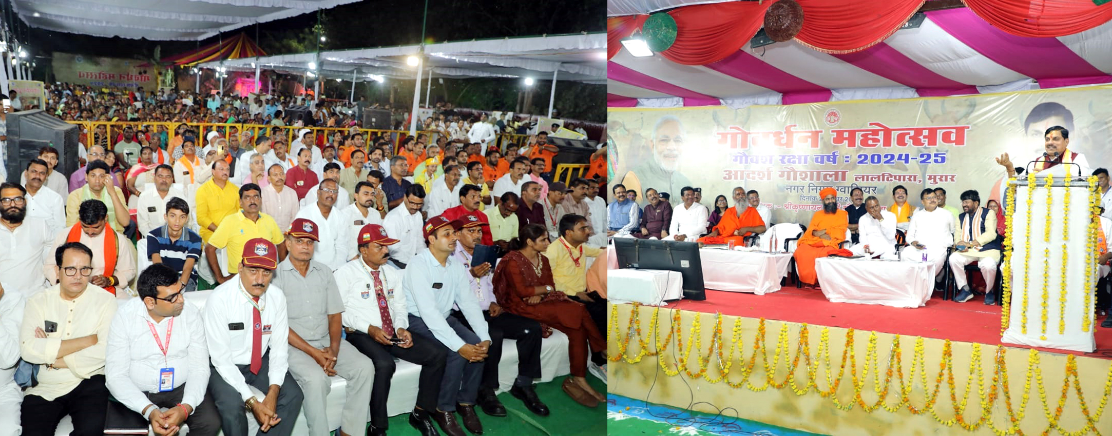 मुख्यमंत्री डॉ.मोहन यादव ने लाल टिपारा गौशाला ग्वालियर में गोवर्धन पूजा समारोह को संबोधित किया।