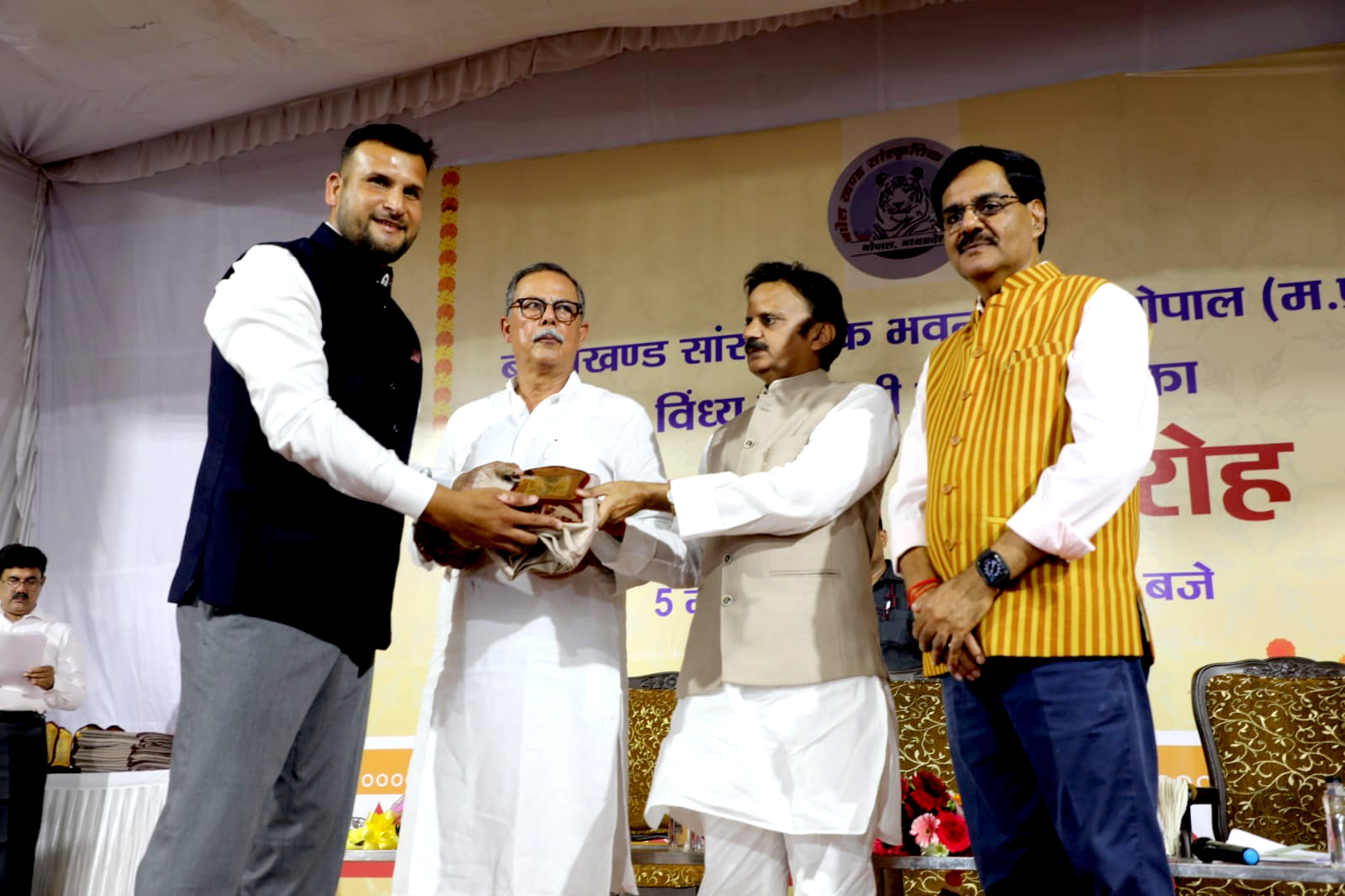 उप मुख्यमंत्री श्री शुक्ल ने भारतीय क्रिकेट टीम के खिलाड़ी श्री ईश्वर पाण्डेय को सम्मानित किया
