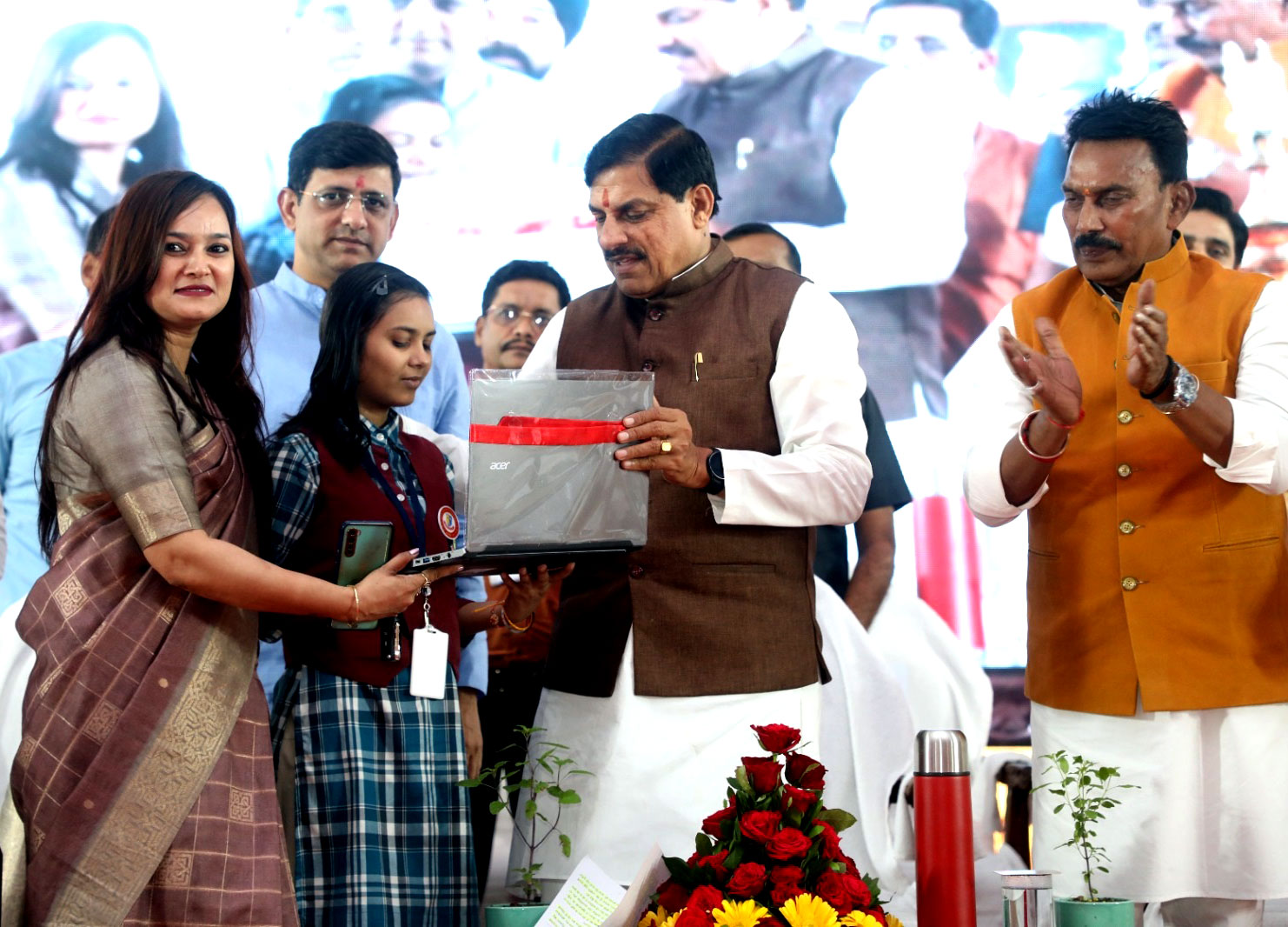 मुख्यमंत्री डॉ. मोहन यादव ने इंदौर में लैपटॉप निशक्त शिक्षा प्रोत्साहन योजना में विद्यार्थियों को लैपटॉप प्रदान किये।
