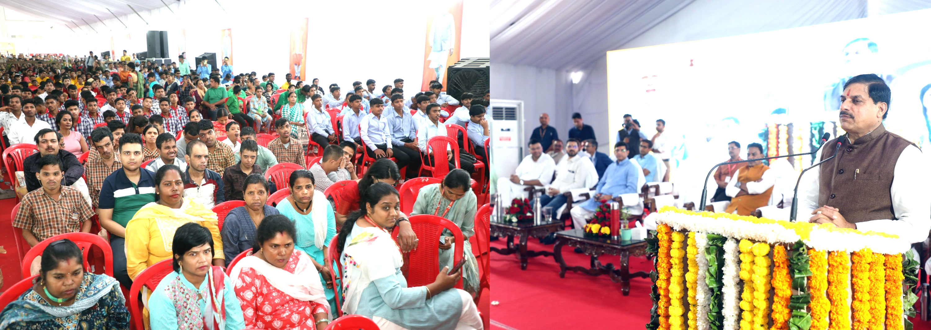 मुख्यमंत्री डॉ.मोहन यादव ने इंदौर के ग्रामीण हाट बाजार में आयोजित कार्यक्रम में संबोधित किया।