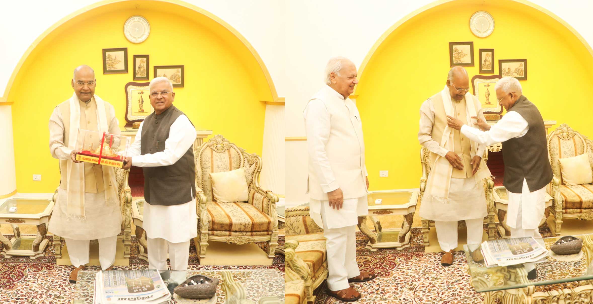 राज्यपाल श्री मंगुभाई पटेल ने राजभवन में पूर्व राष्ट्रपति श्री रामनाथ कोविंद का शॉल एवं स्मृति चिन्ह भेंटकर अभिनंदन किया।