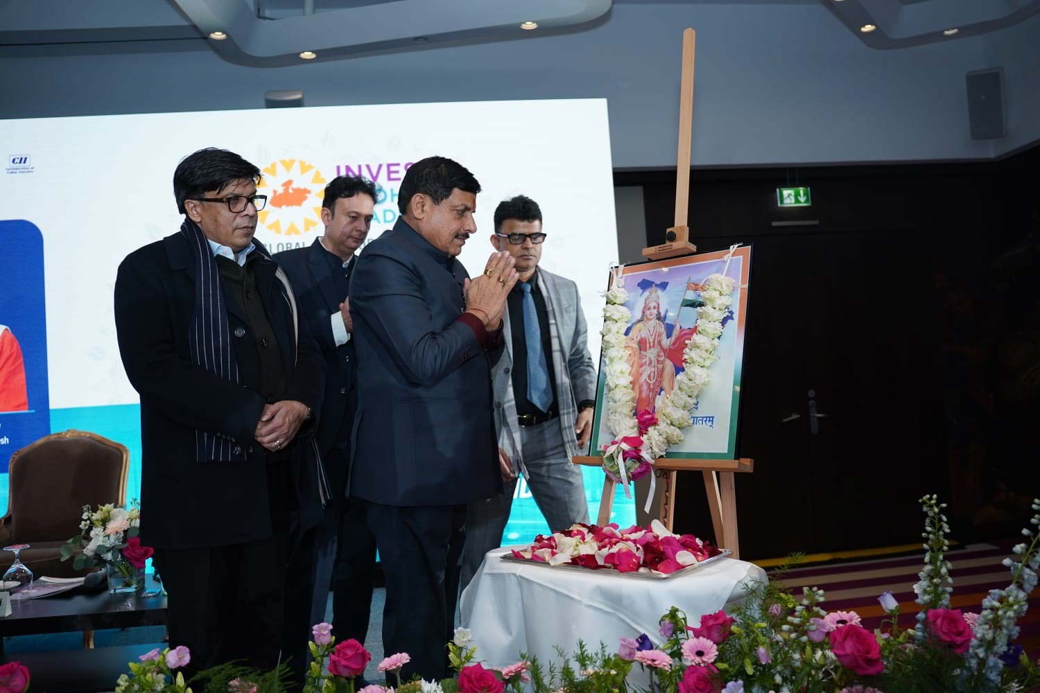 मुख्यमंत्री डॉ. मोहन यादव ने भारतवंशी और "फ्रेंड्स ऑफ एमपी" से संवाद कार्यक्रम में भारत माता के चित्र पर पुष्प अर्पित कर नमन किया