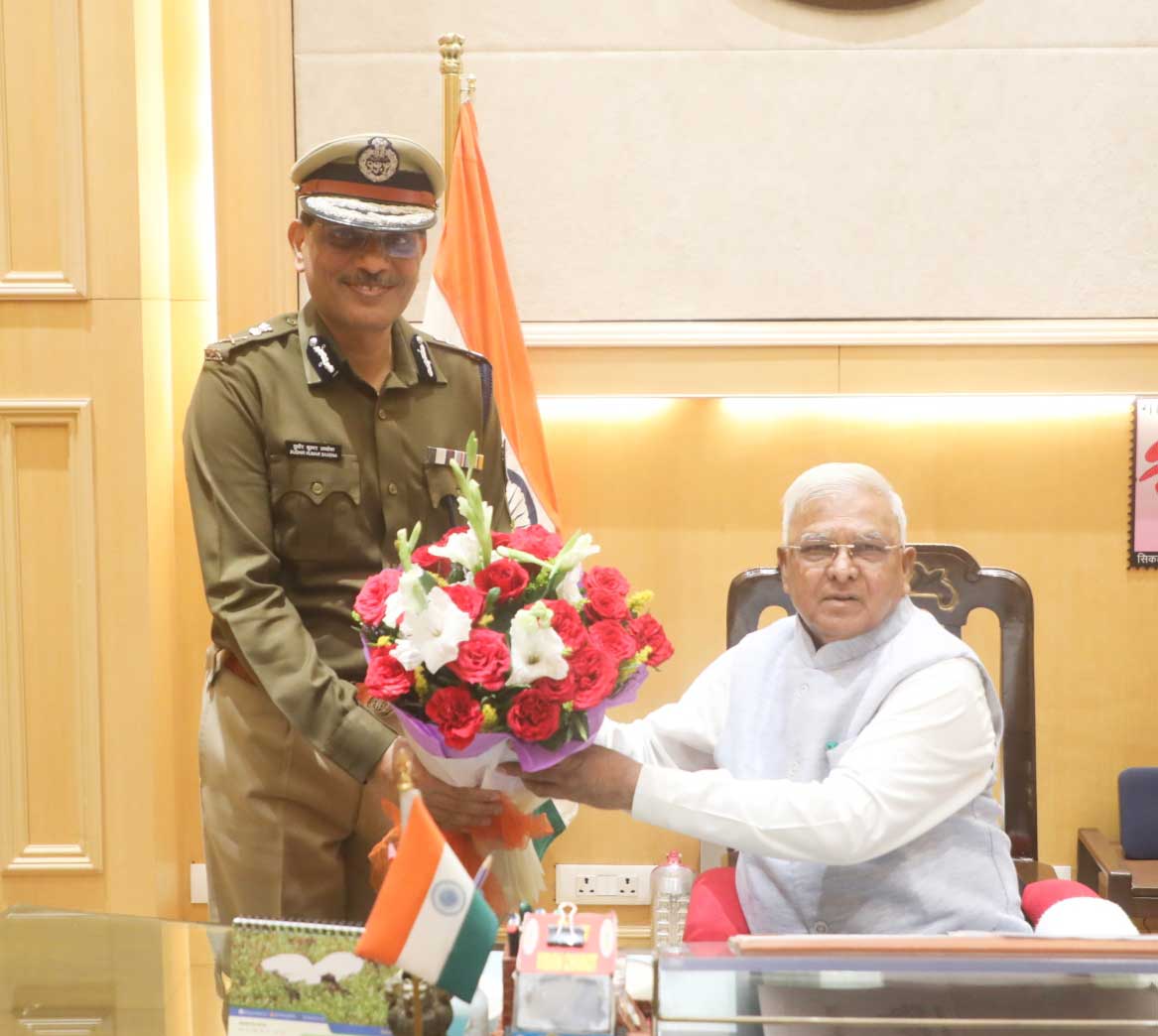 राज्यपाल श्री मंगुभाई पटेल से मध्यप्रदेश के पुलिस महानिदेशक श्री सुधीर कुमार सक्सेना ने राजभवन में सौजन्य भेंट की।
