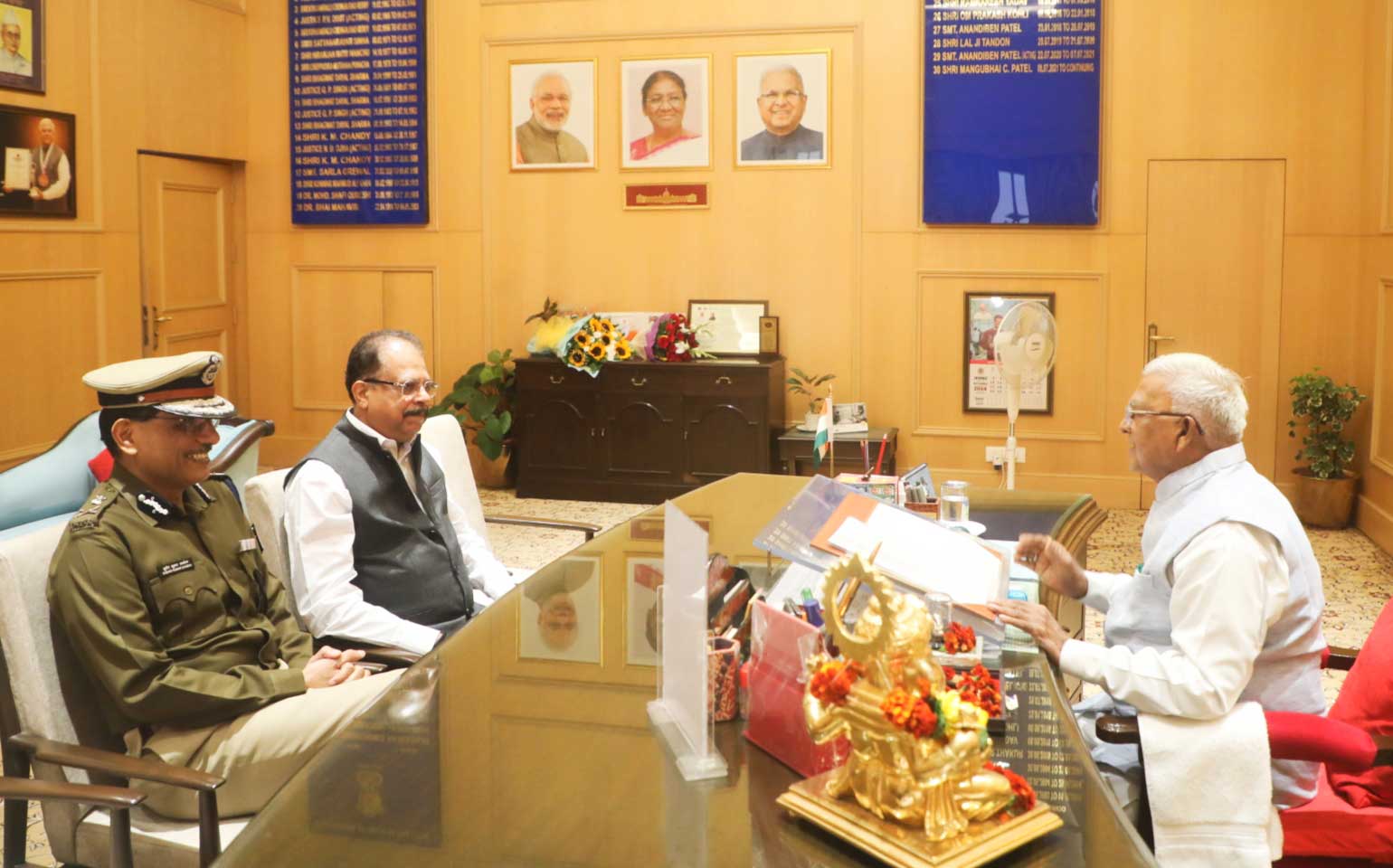 राज्यपाल श्री मंगुभाई पटेल से मध्यप्रदेश के पुलिस महानिदेशक श्री सुधीर कुमार सक्सेना ने राजभवन में सौजन्य भेंट की।
