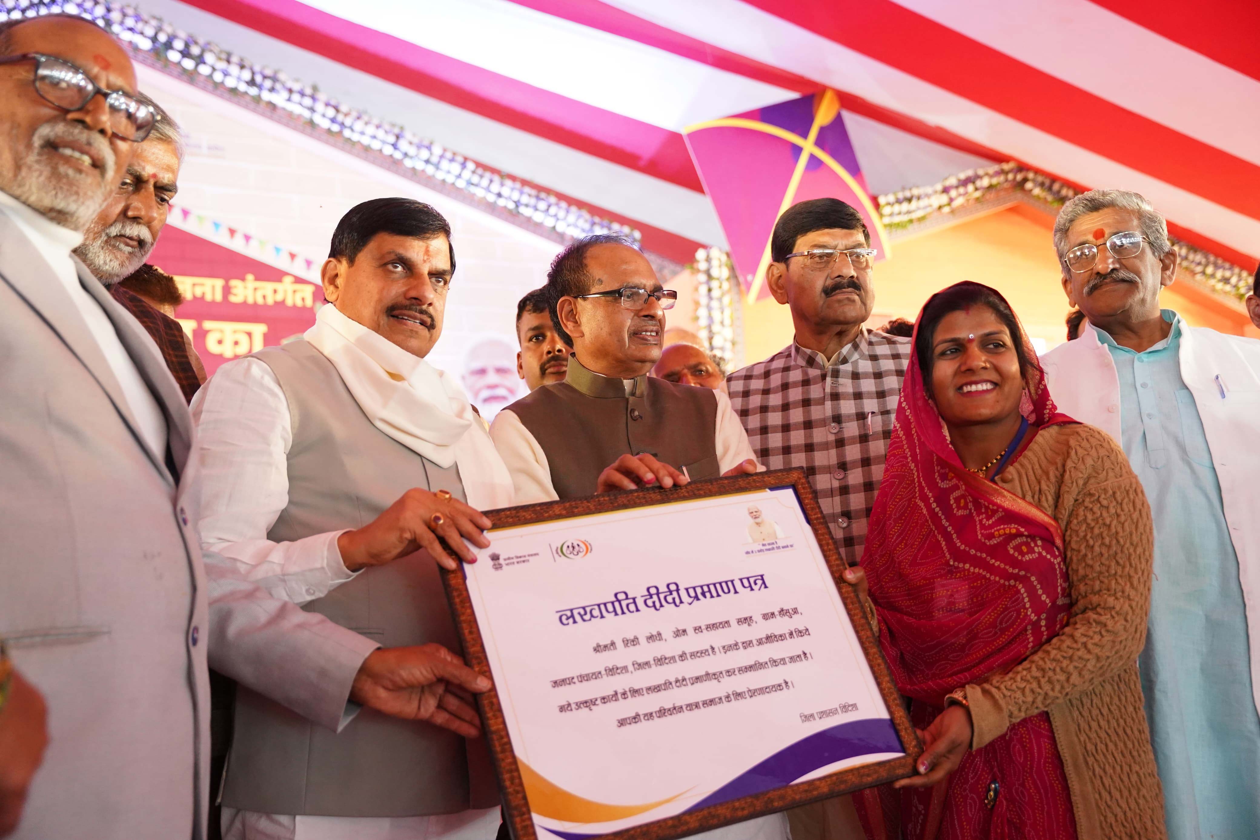 मुख्यमंत्री डॉ. मोहन यादव ने विदिशा में लखपति दीदियों को प्रमाण पत्र सौंपे।