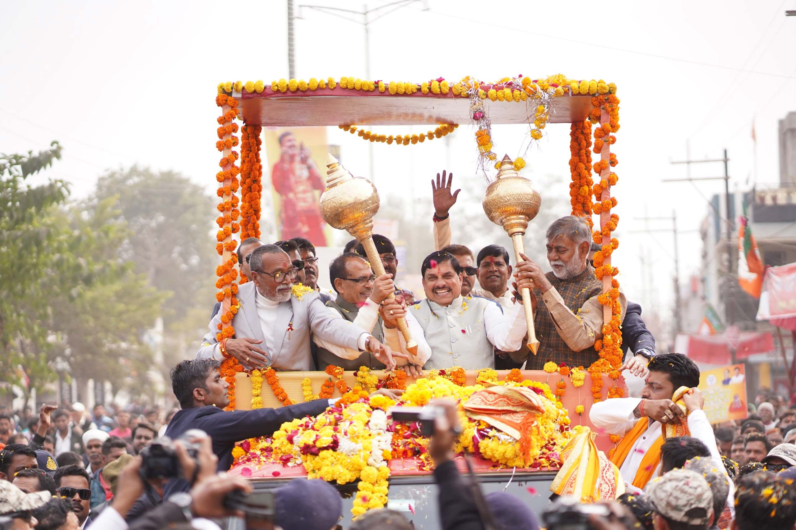 मुख्यमंत्री डॉ. मोहन यादव ने विदिशा के रोड शो में जनता का अभिवादन किया।