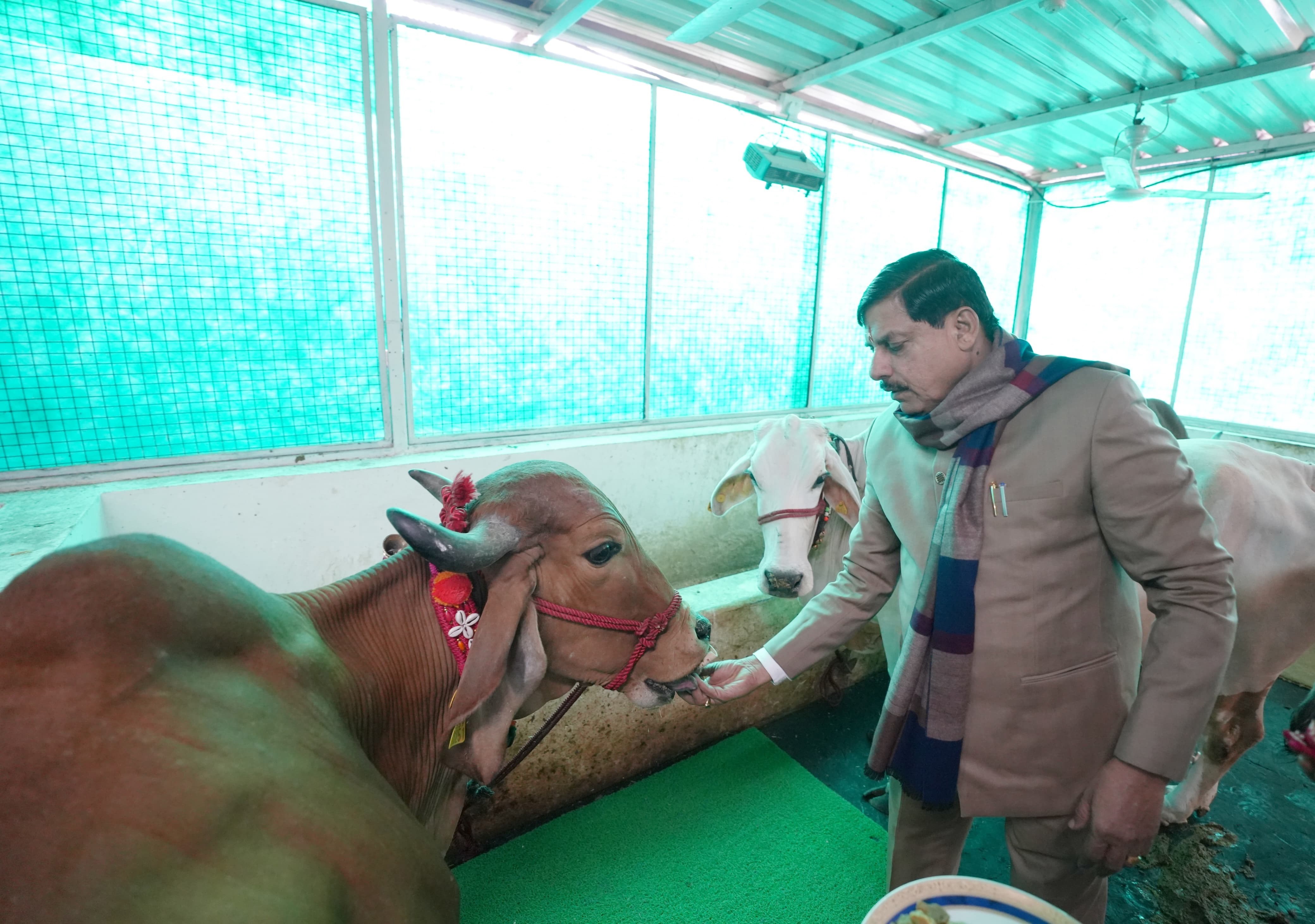 मुख्यमंत्री डॉ. मोहन यादव ने आज मुख्यमंत्री निवास की गौशाला में गौ-पूजन कर गौ माता को गुड़-रोटी खिलाई।