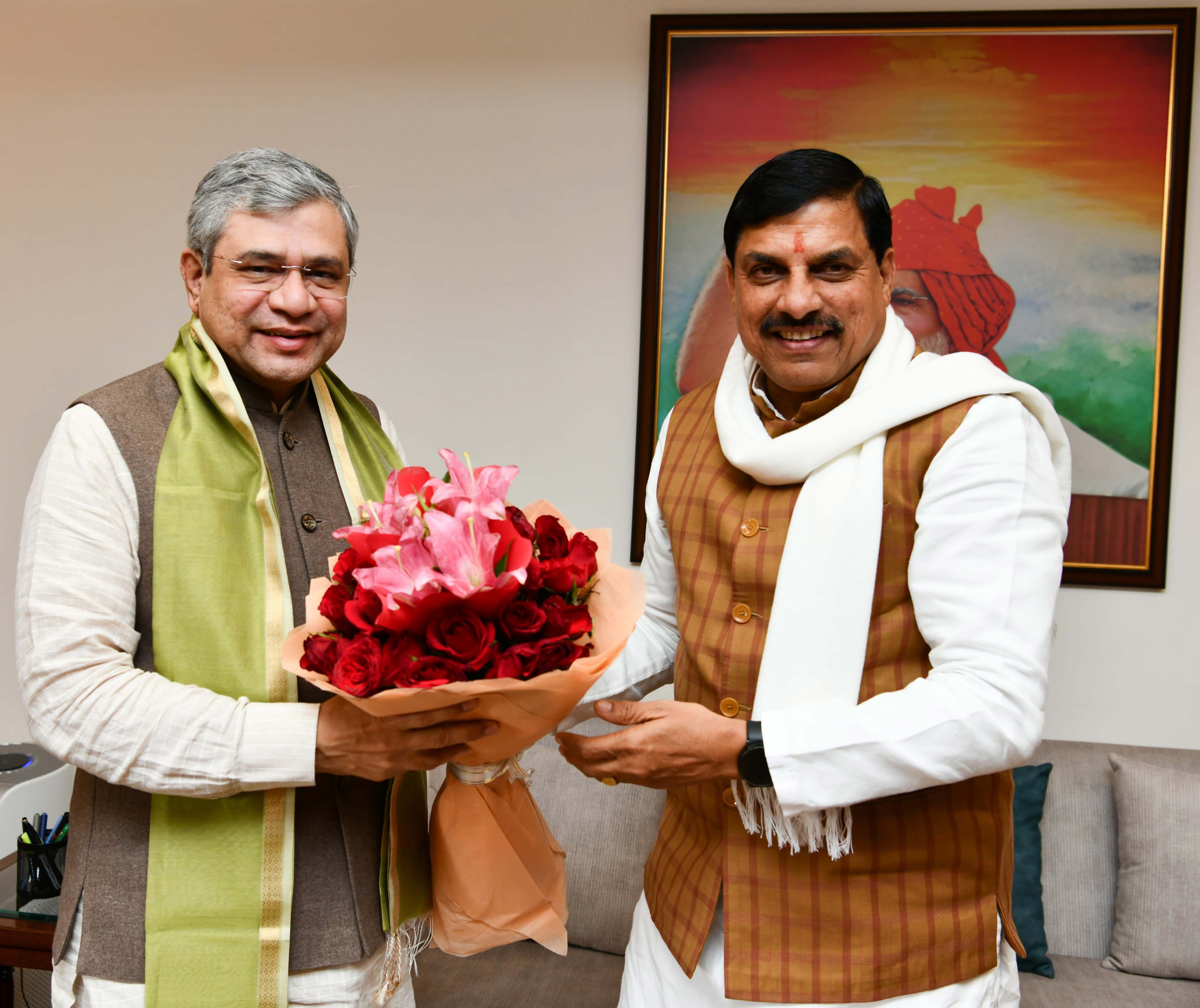 मुख्यमंत्री डॉ. मोहन यादव ने रेल मंत्री श्री अश्विनी वैष्णव से नई दिल्ली के रेल भवन में सौजन्य भेंट की।