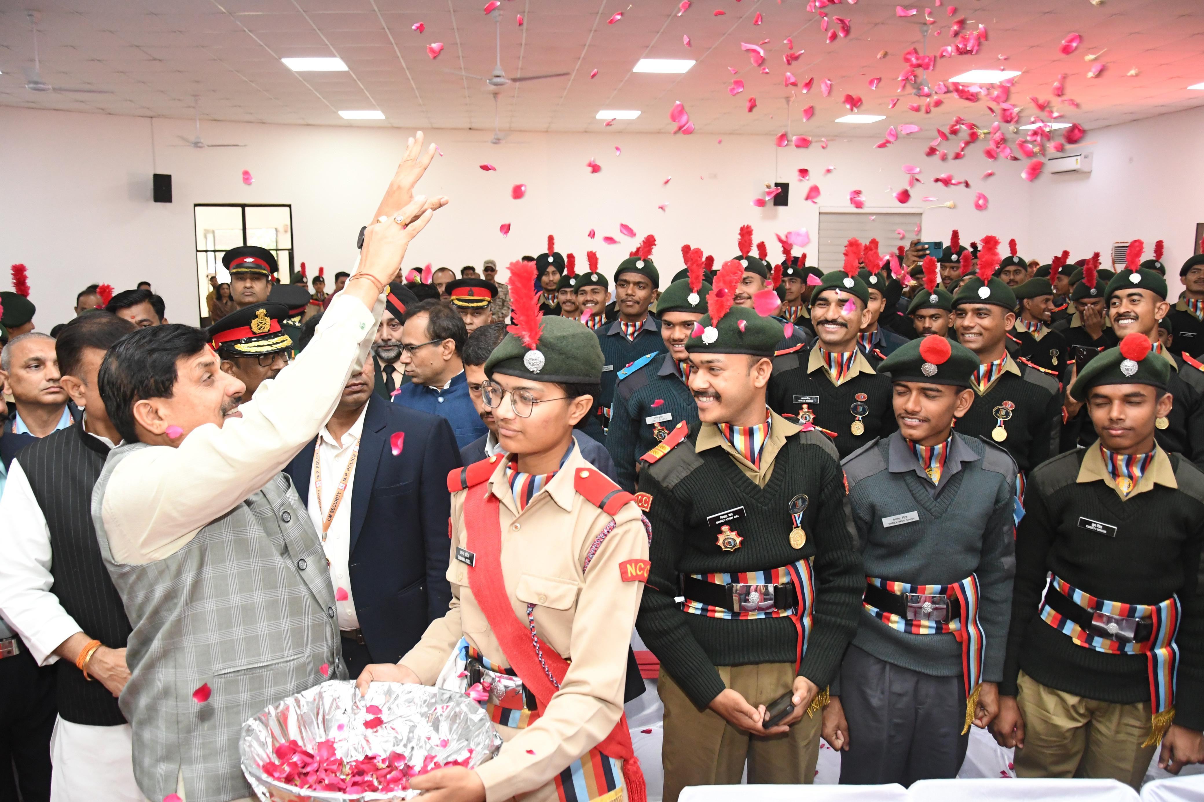 मुख्यमंत्री डॉ.मोहन यादव ने मुख्यमंत्री निवास में मध्यप्रदेश के दिल्ली के गणतंत्र समारोह में शामिल होने वाले एनसीसी कैडेट्स का पुष्प वर्षा कर स्वागत किया।