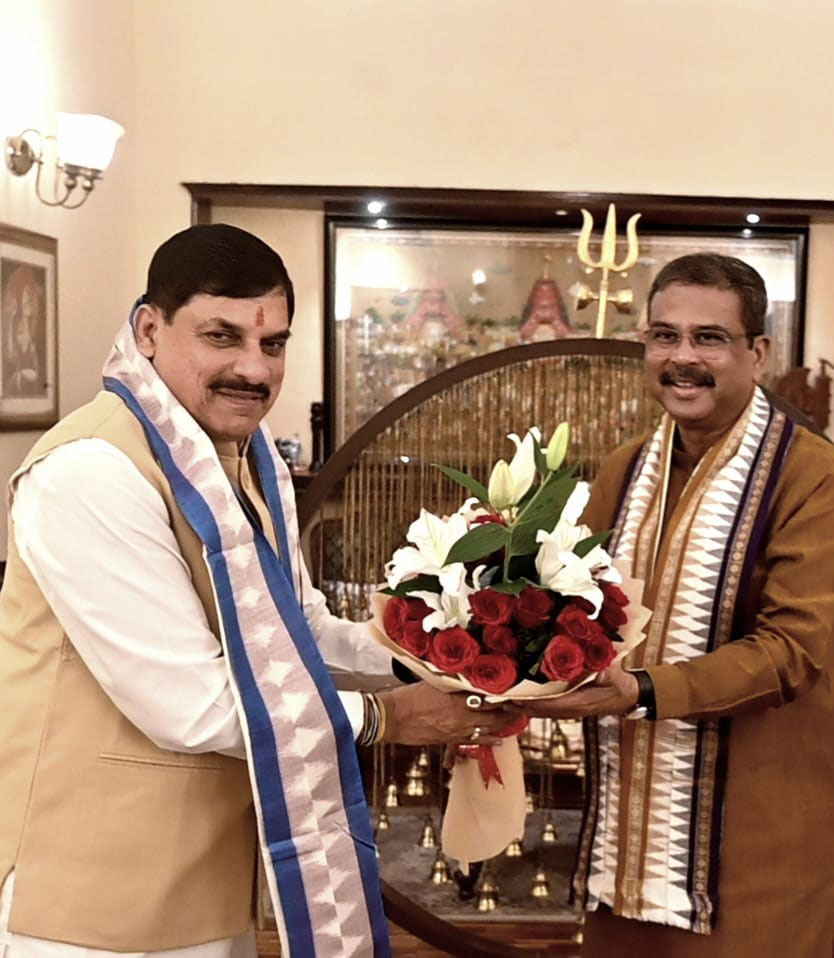 मुख्यमंत्री डॉ. मोहन यादव ने गुरुवार को नई दिल्ली में केंद्रीय शिक्षा मंत्री श्री धर्मेंद्र प्रधान से उनके निवास पर सौजन्य भेंट कर विभिन्न मुद्दों पर चर्चा की।