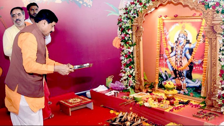 मुख्यमंत्री डॉ. मोहन यादव ने अधर्म पर धर्म की विजय के प्रतीक विजयादशमी पर्व पर मुख्यमंत्री निवास स्थित समत्व भवन में शस्त्र पूजन किया।