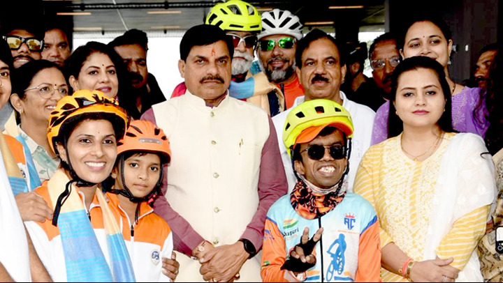 मुख्यमंत्री डॉ. मोहन यादव ने मुख्यमंत्री निवास परिसर में पैडल टू प्लांट कार्यक्रम- नया भारत हरा भारत यात्रा पर रवाना होने वाली पूर्व अंतर्राष्ट्रीय पर्वतारोही सुश्री अंजना यादव को शुभकामनाएं दी।