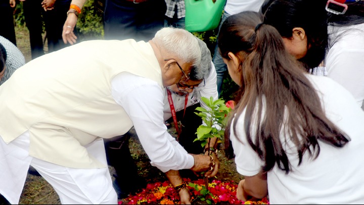 राज्यपाल श्री मंगुभाई पटेल ने ज्ञानविज्ञान भवन, बरकतउल्ला विश्वविद्यालय परिसर में पौधरोपण किया।