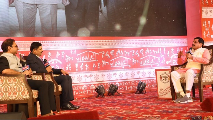 मुख्यमंत्री डॉ. मोहन यादव ने कुशाभाऊ ठाकरे इंटरनेशनल कन्वेंशन सेंटर में एक निजी टीवी चैनल के "जनजातीय प्रज्ञा" कार्यक्रम में संवाद किया।