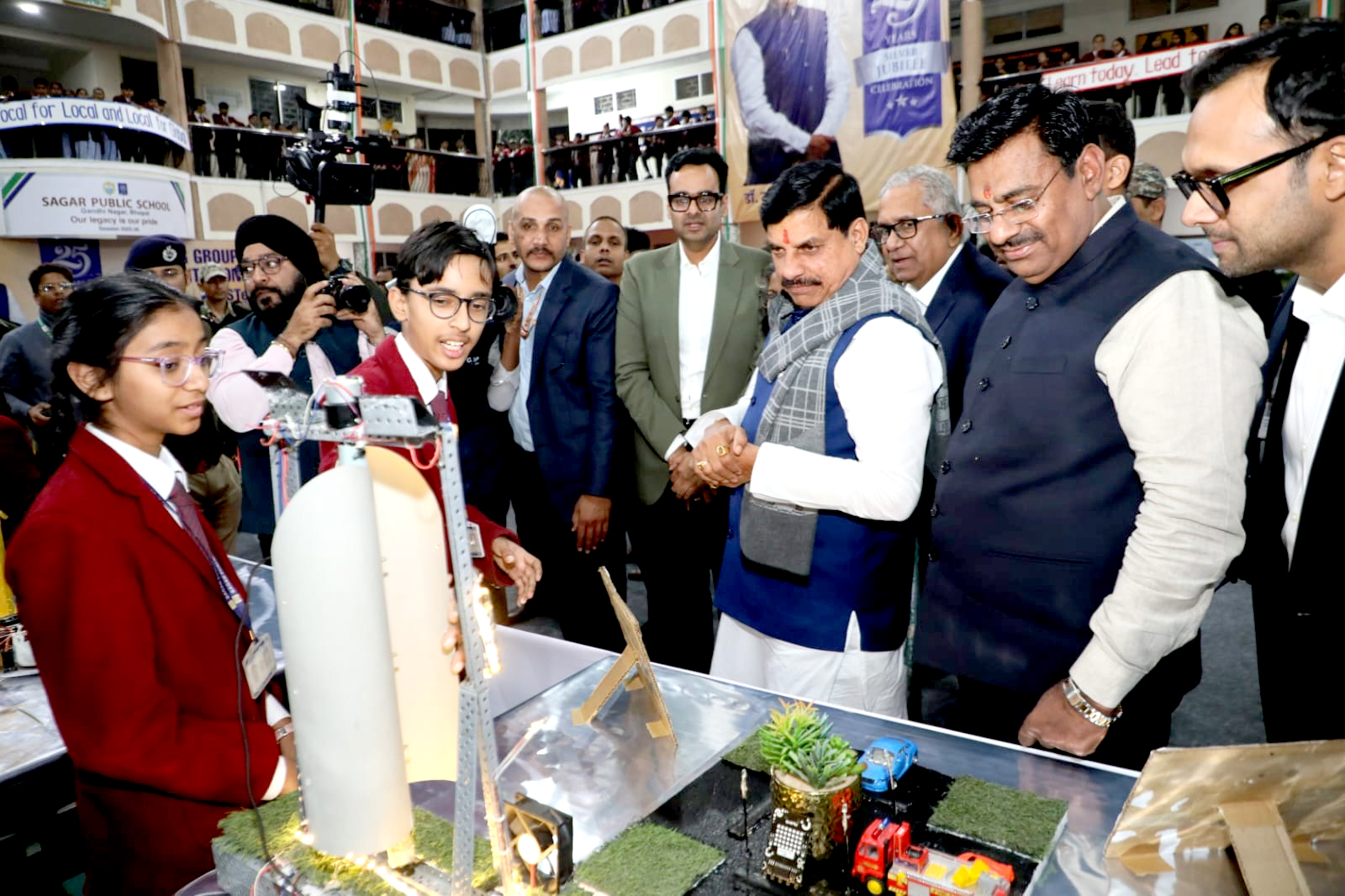 मुख्यमंत्री डॉ. मोहन यादव ने सागर पब्लिक स्कूल के विद्यार्थियों द्वारा बनाए गए विज्ञान मॉडल देखे और विद्यार्थियों से जानकारी प्राप्त की।